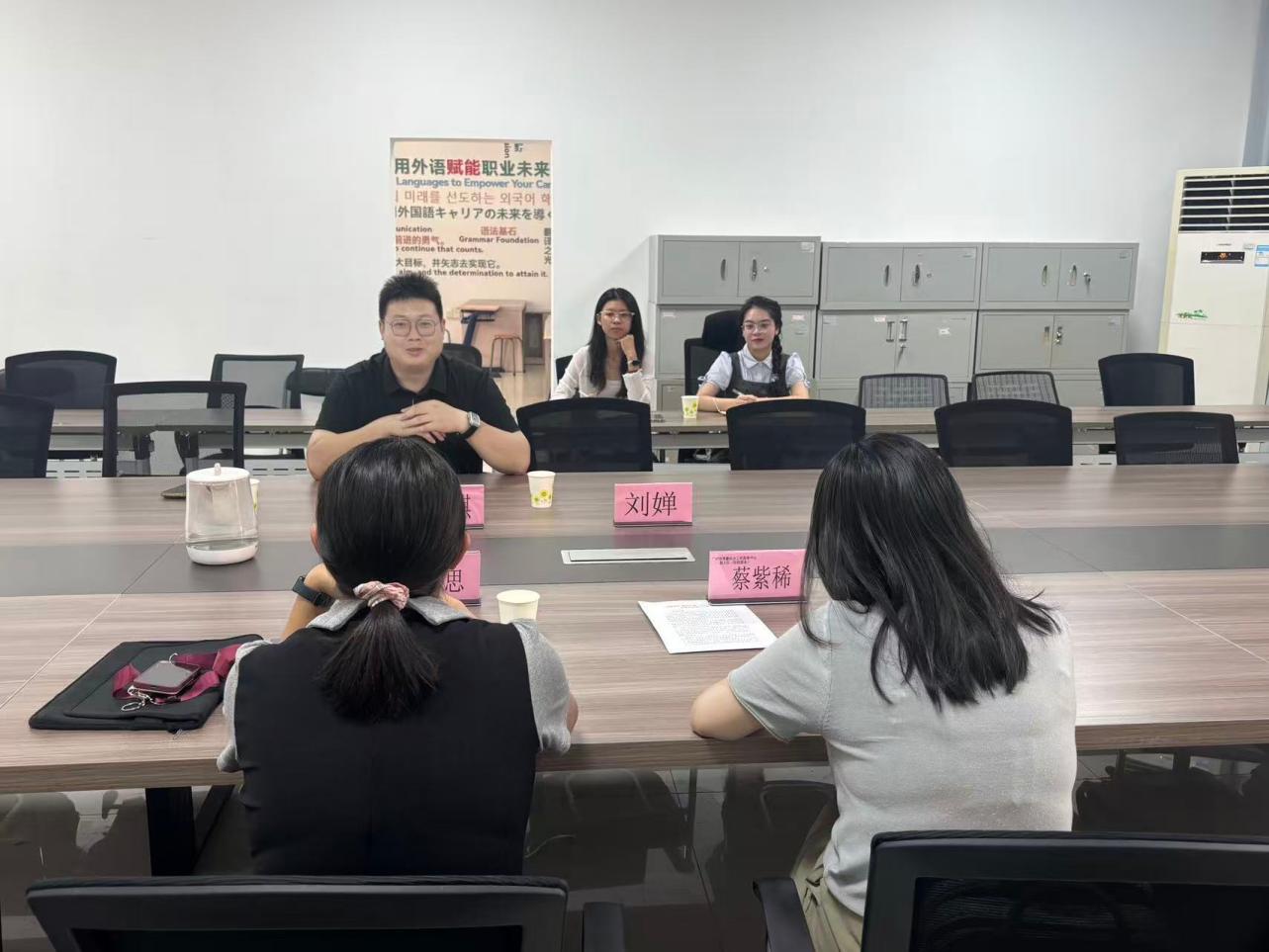 2025916日,广州市青藤社会工作服务中心杨曼思副主任蔡紫稀副主任与广东工贸职业技术学院应用外语学院头雁服务队负责人冯锐骐老师及两位队长于行知楼606会议室举行会议