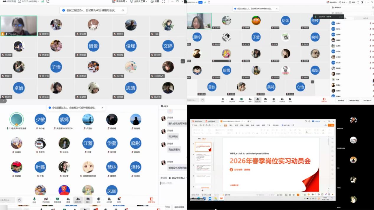 线上会议由商务英语和旅游英语专业的实习指导老师通过腾讯会议组织学生参加,提醒学生遵守相关规定、提高安全意识,关注自身合法权益。本次动员大会进一步明确了2026年春季岗位实习工作的核心目标与实施要求,为实习工作的规范开展筑牢基础。下一步,应用外语学院将持续深化实习全过程管理,精准赋能学子实习实践,实现高质量成长成才。