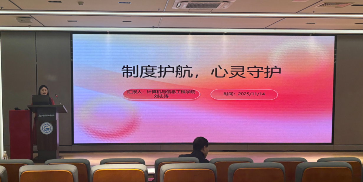 在二级心理辅导站工作及案例分享环节,刘建军依次邀请相关学院代表发言。首先,计算机与信息工程学院刘志涛老师以“制度护航,心灵守护”为主题,介绍“宿舍长——心理委员—— 辅导员——学生工作副书记——心理咨询中心”五级上报机制,通过实际案例复盘,强调早发现与家校协同在危机干预中的关键作用。