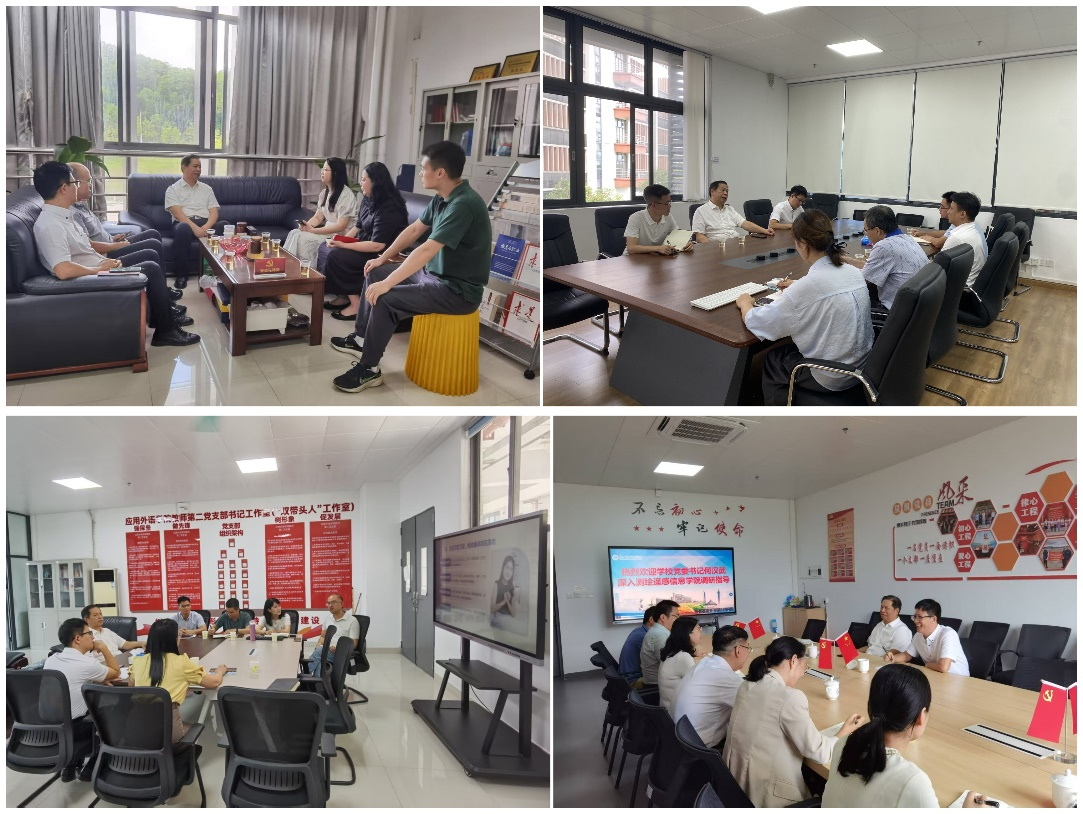 上图:何汉武书记新学期初到二级学院座谈