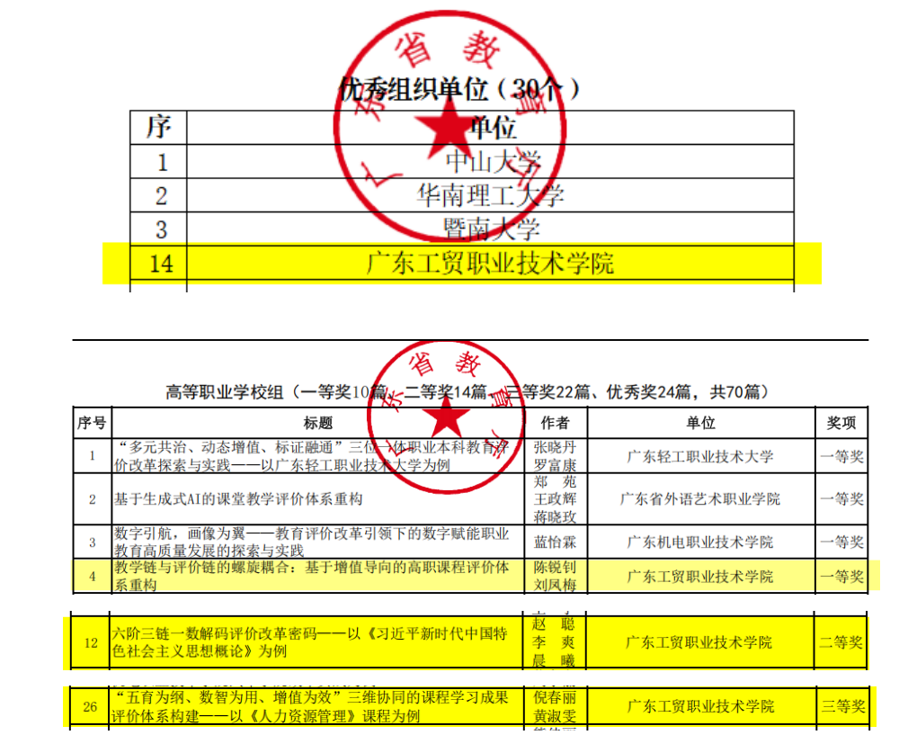 近日,广东省教育厅印发《关于公布2025年教育评价改革主题征文活动获奖名单的通知》,学校成功获评全省 “优秀组织单位”(全省共30个,高职院校仅5个),教师团队亦在此次征文中斩获多项荣誉。