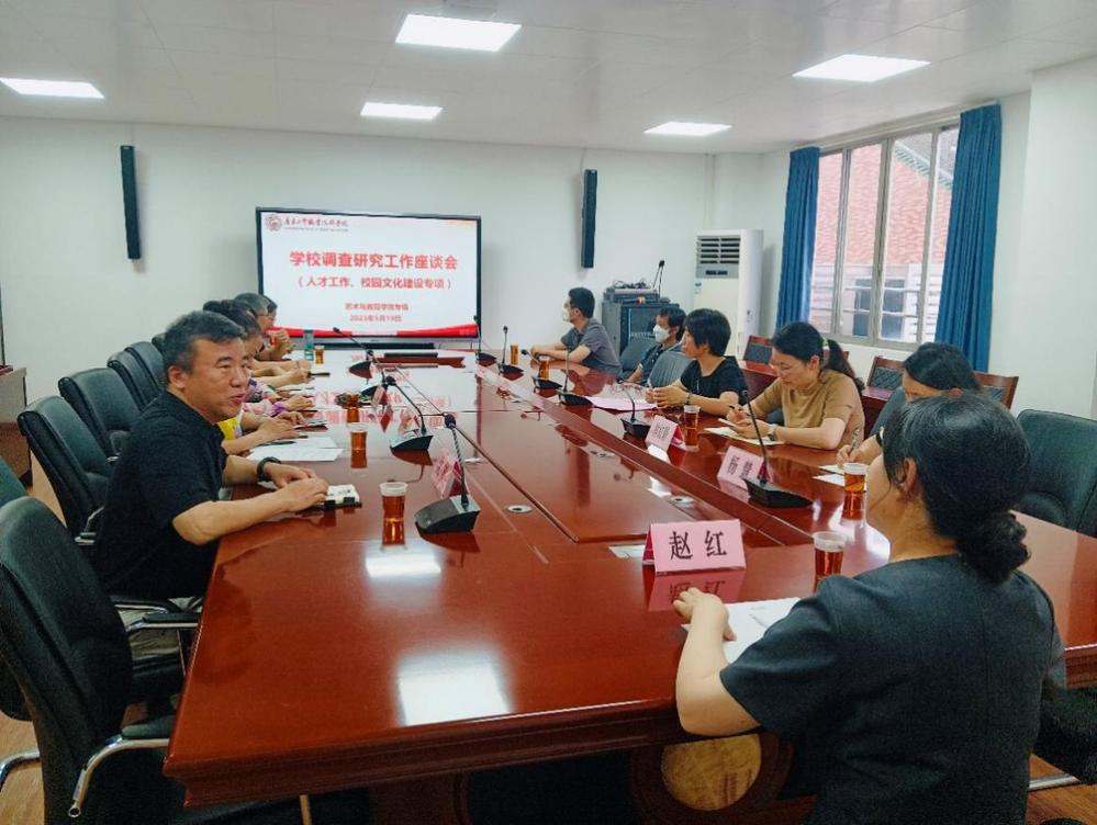 5月19日下午,学校党委副书记赵红带领人事处处长杨慧、党委办副主任林虹静等一行人来到艺术与教育学院开展人才工作和校园文化建设专项调研工作,艺术与教育学院领导班子、专任教师和辅导员代表共13人参加了调研座谈会。