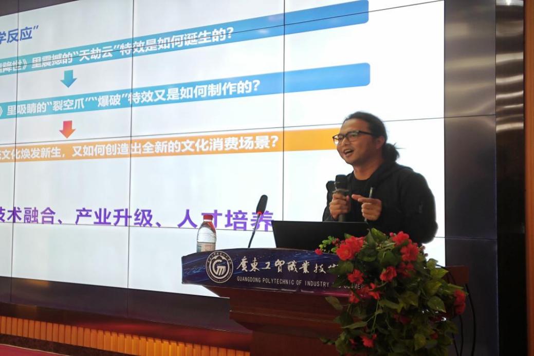 2025年10月27日,广东工贸职业技术学院艺术与教育学院在报告厅隆重举行“技术赋能艺术:数字时代的文化创变”专题讲座暨企业实战实训开课仪式。本次活动邀请深圳洛克特视效科技有限公司创始人聂华军担任主讲嘉宾。学院领导院长张幼晖、副院长彭金奇及专任教师和23级数字媒体艺术设计专业学生共同参与。洛克特公司作为国家高新技术企业、深圳市专精特新企业,是《哪吒之魔童降世》《哪吒之魔童闹海》《长津湖》《美人鱼》等知名影片的CG特效主力创作团队。聂华军视效导演是中国最早一批CG特效制作人之一,拥有21年行业经验,并是深港国际影视后期制作基地的发起人与运营者。