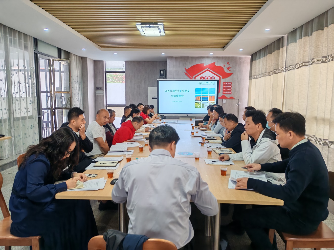 2025年11月6日下午,总务后勤部在兰苑四楼多功能厅组织召开2025年第9次食品安全月调度例会。学校党委委员、副校长孙师家,总务后勤部相关老师,各校区食堂、商铺现场负责人参加了此次会议。